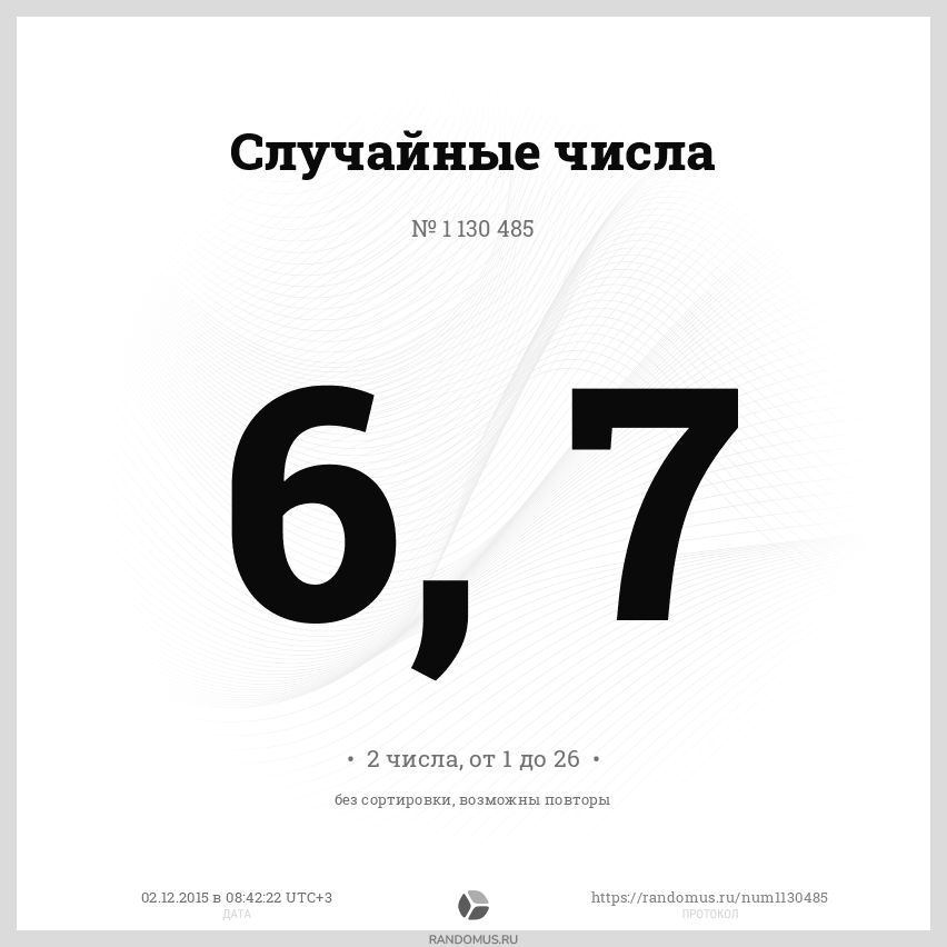 2 числа в диапазоне от 1 до 26, без сортировки результатов, с возможными повторами |