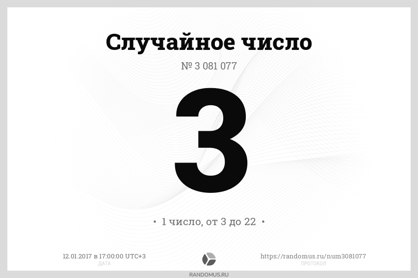 1 число в диапазоне от 3 до 22, без сортировки результатов, с возможными повторами |