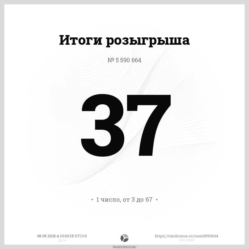 1 число в диапазоне от 3 до 67, без сортировки результатов, с возможными повторами |