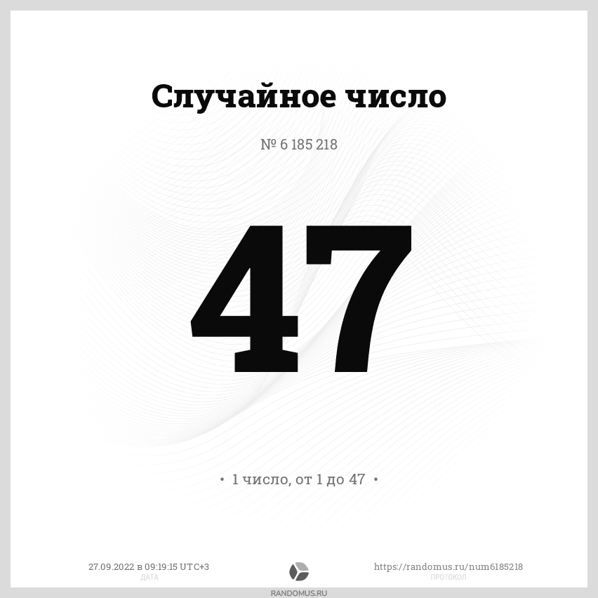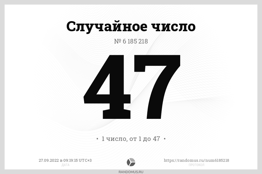 1 число в диапазоне от 1 до 47, без сортировки результатов, с возможными повторами |