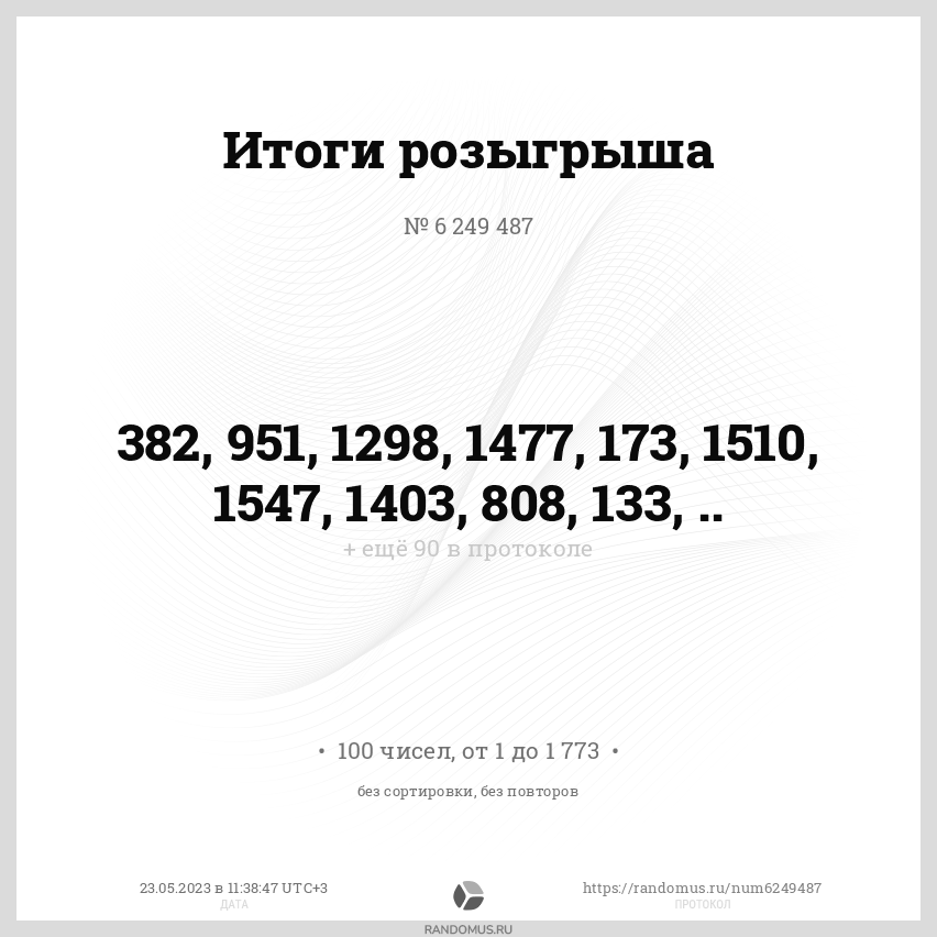 Дата проведения розыгрыша: 23 мая 2023