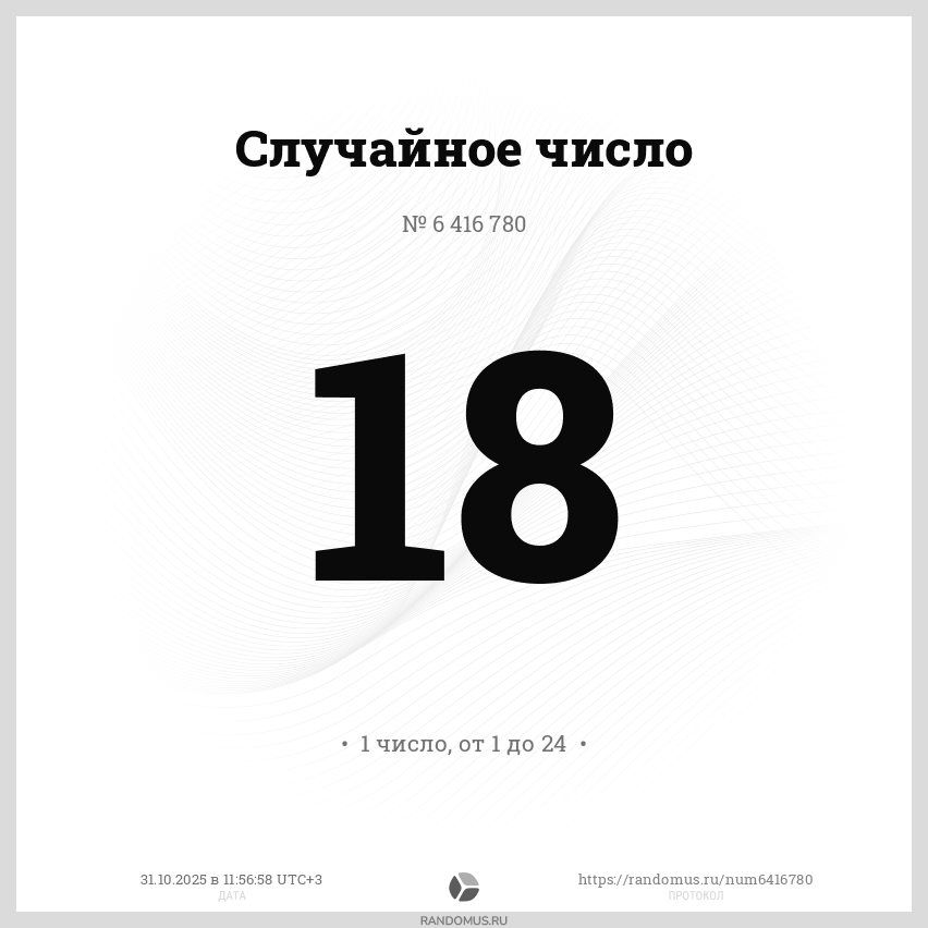 1 число в диапазоне от 1 до 24, без сортировки результатов, с возможными повторами |