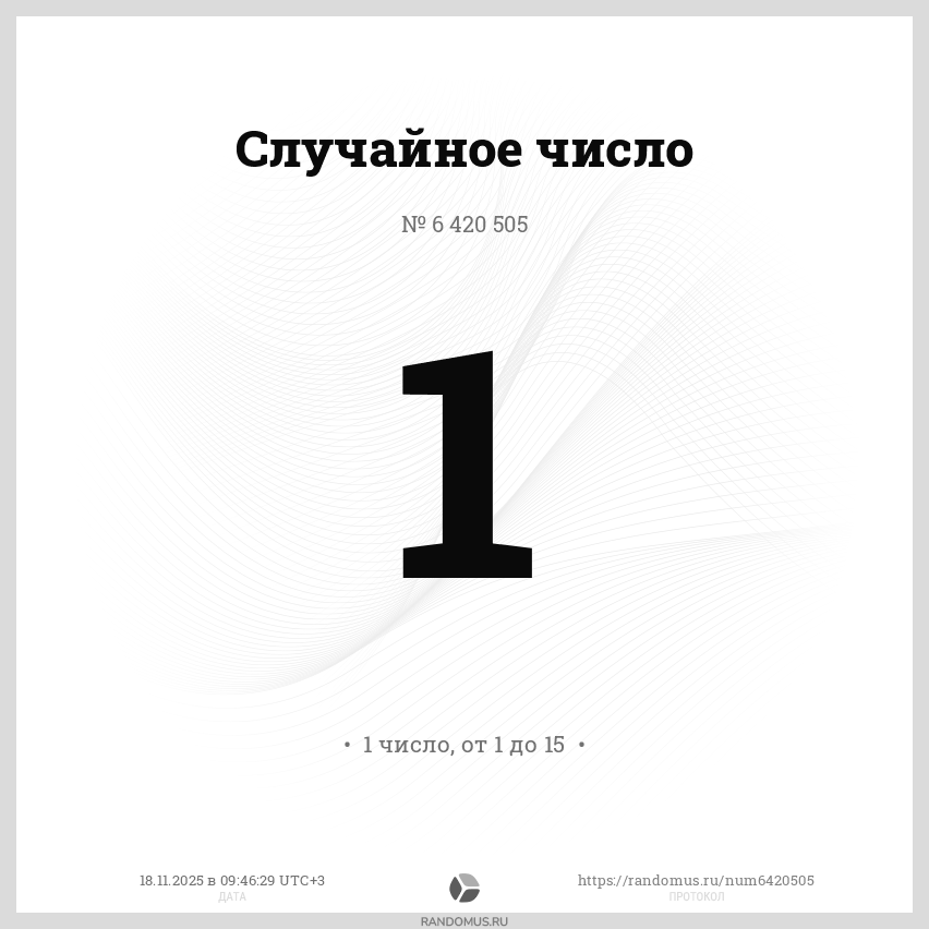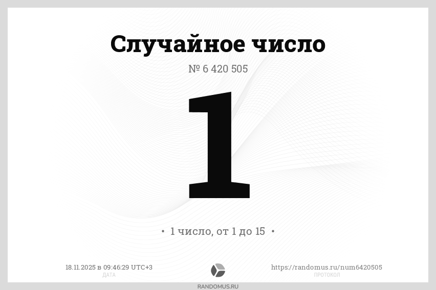 1 число в диапазоне от 1 до 15, без сортировки результатов, с возможными повторами |