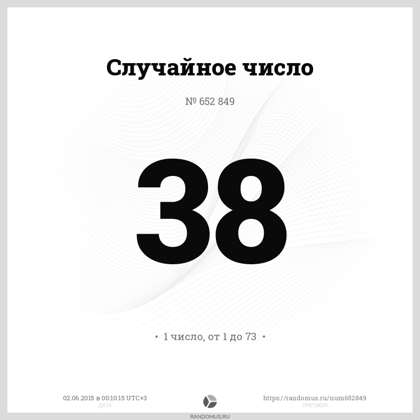 1 число в диапазоне от 1 до 73, без сортировки результатов, с возможными повторами |