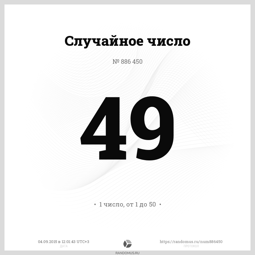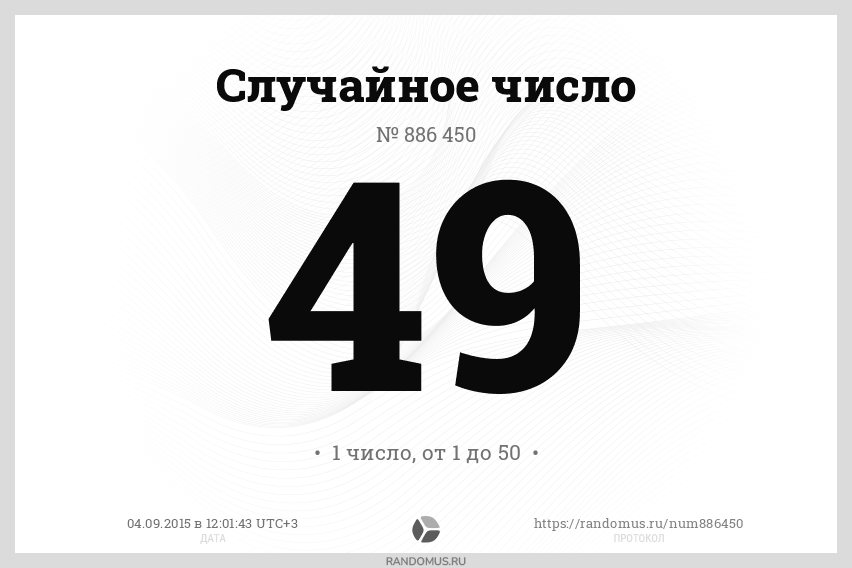 1 число в диапазоне от 1 до 50, без сортировки результатов, с возможными повторами |