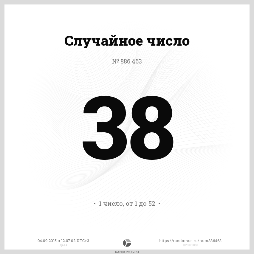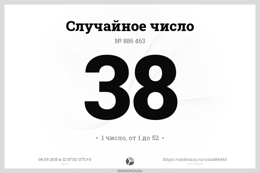 1 число в диапазоне от 1 до 52, без сортировки результатов, с возможными повторами |